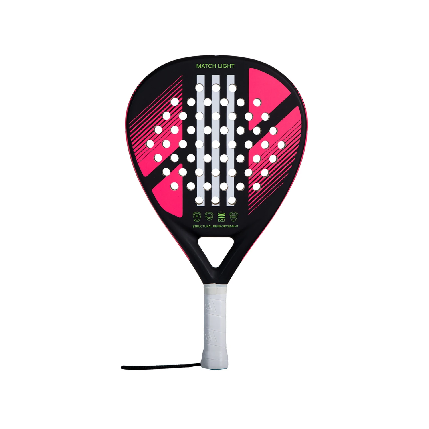 The Match Light 3.2 is a round-shaped racket ideal for occasional players. This racket is designed to offer maximum comfort and durability and from the first moment the sensations will be unbeatable. It offers great manoeuvrability thanks to its format and low balance, sensational comfort thanks to its fibreglass composition and the EVA Soft Performance rubber and great power thanks to the combination of materials with which it is constructed.