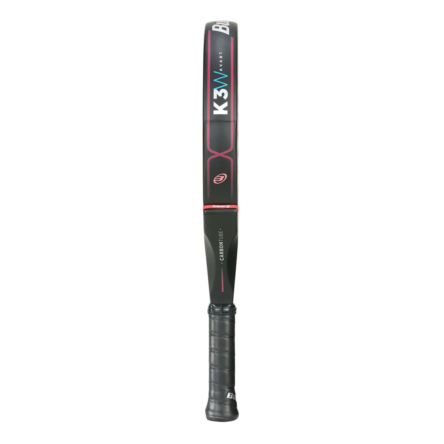 The K3 W is a round shaped racket with a low balance that provides maximum control and high performance. The surface of the racket is composed of Graphite that mixes carbon fiber and fiberglass providing flexibility and resistance. The inner part of the core is made up of MultiEVA rubber and a 100% carbon fiber frame. In addition, it has a 3D star-shaped rough surface for better ball spin.