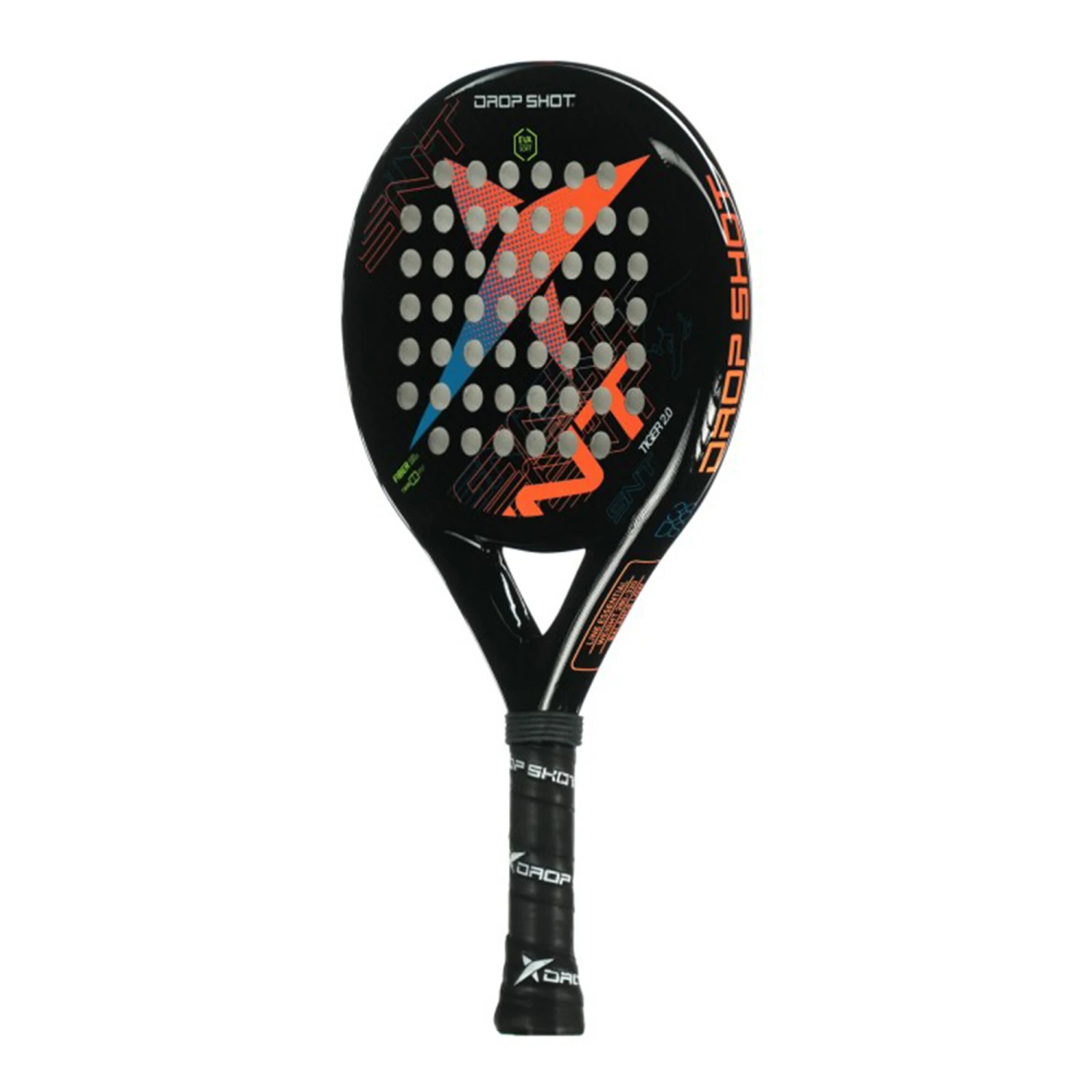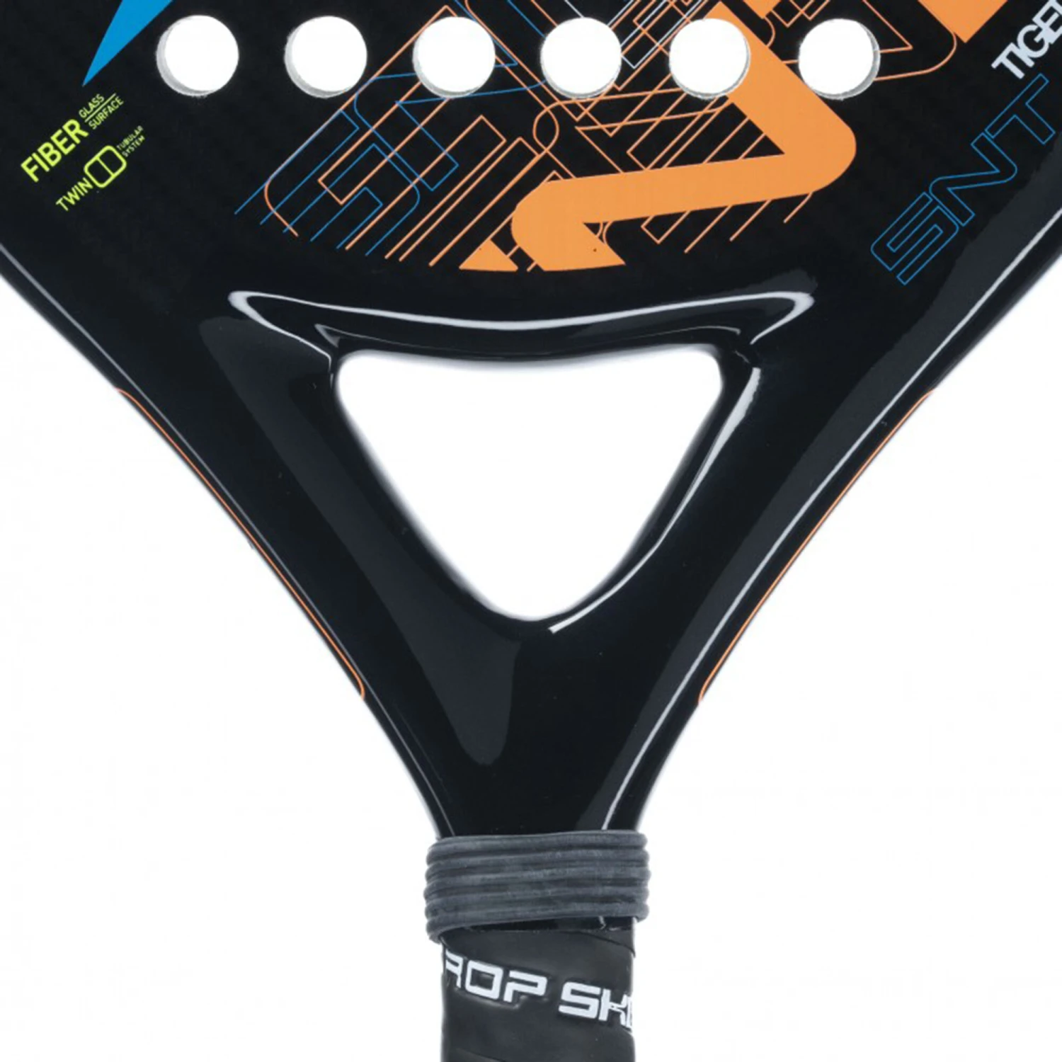 The Drop Shot Tiger 2.0 is a round shaped racket designed for players up to 8 years old. It combines fiberglass of high resistance and elasticity and Full Eva technology, so that the racquet is made of 100% Eva without a frame.