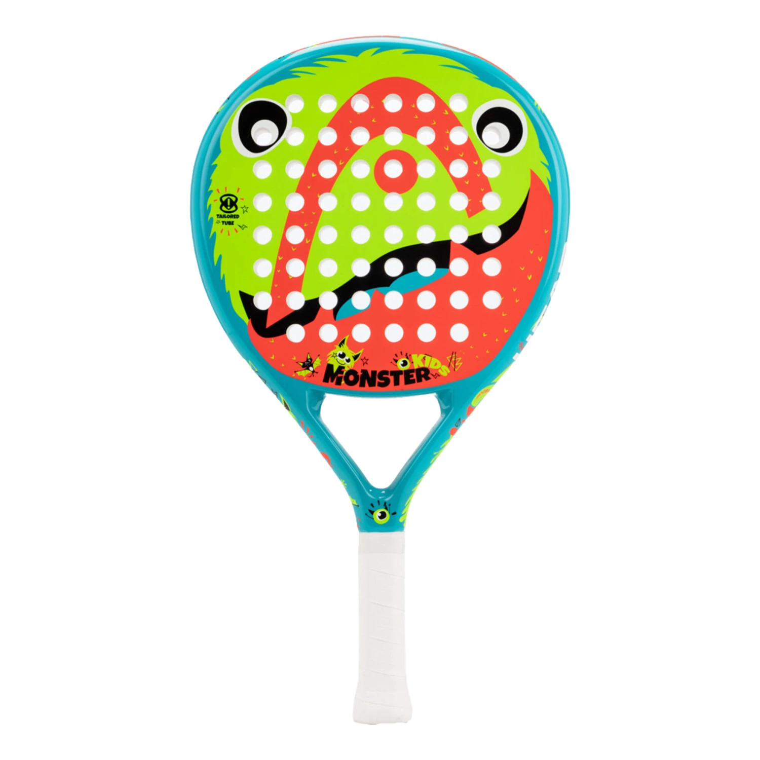 Lightweight and short, but with a longer grip that can accommodate both hands, the MONSTER KIDS PADEL RACKET is the perfect racket for little ‘monsters’ up to 10 years old. The new, colorful ‘monster’ design adds to the appeal of a racket that comes with power foam as well as Innegra technology for shock absorption and stability. To extend its lifetime, the MONSTER KIDS PADEL RACKET has the Integrated Protector System, a pre-molded carbon bumper which protects against chips and scratches.