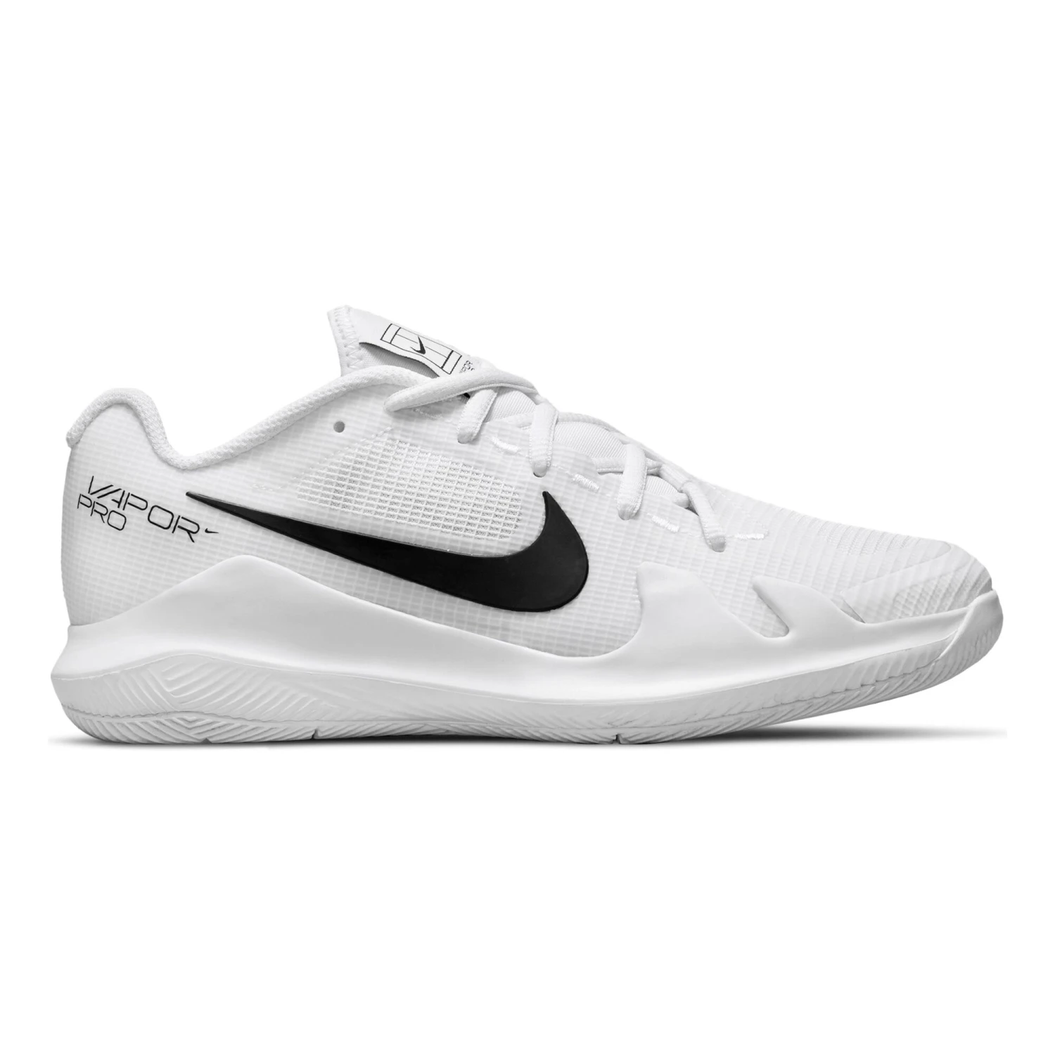Breathable and comfortable, the NikeCourt Jr. Vapor Pro is ready for your fastest matches. Asymmetrical lacing gives you the support you need to get to the ball fast, and a tennis-specific outsole gives you the traction you need without impacting your ability to slide.