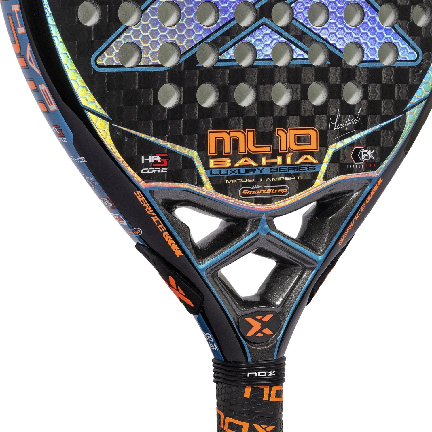 The ML10 Luxury Bahia is a versatile racket that has a teardrop shape and is built with top quality materials. Players will find a racket that contributes in defence and in the construction of the point but that at the same time shows a magnificent response when attacking, bringing power and explosiveness in volleys and smashes. It also incorporates the AVS anti-vibration system to avoid elbow injuries and rough surfaces to help hitting with high spin.